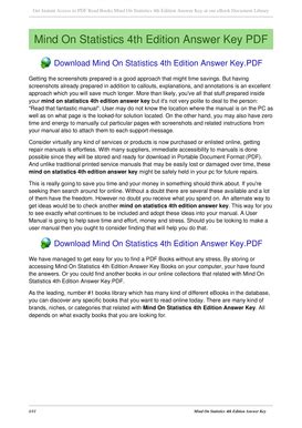 Read Online MIND ON STATISTICS 4TH EDITION ANSWER KEY mobipocket